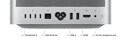 Out of the box, the Mac Studio comes with four Thunderbolt 4 ports (all of which support up to 40Gb/s bandwidth) and two USB-A ports (USB 3.1 Gen 2, up to 10Gb/s). That means you’re getting double the number of Thunderbolt 4 ports and double the bandwidth out of the box. The ethernet connection on the Mac Studio is also 10Gb out of the box, while it’s a $100 upgrade on the M1 Mac Mini. You’ll also get a built-in UHS-II SD card slot reader on the front, with two USB-C ports on the M1 Max Mac Studio.