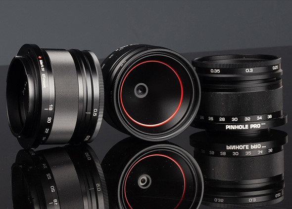 The lens offers precisely-machined pinhole sizes of 0.15, 0.2, 0.25, 0.3, 0.35 and 0.5mm. The lens itself weighs between 161.5 and 171 grams depending upon which version you purchase. It is built from an anodized aluminum alloy.