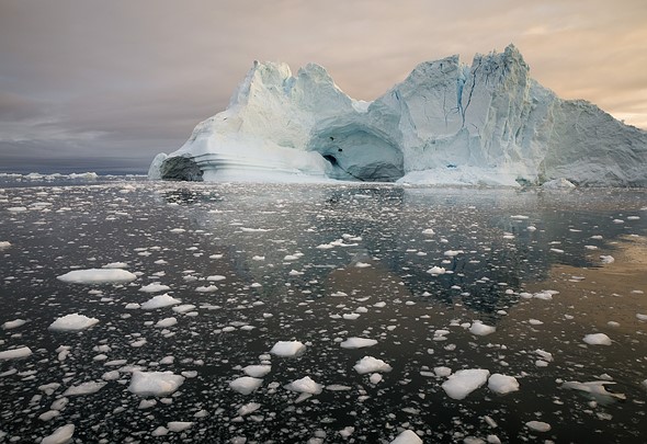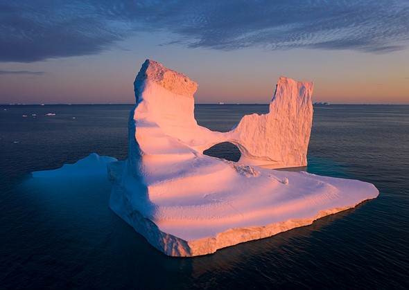 The left side of this iceberg is slightly lower than the right side, and thus the iceberg seems to face left, even though its left side was closer to me in reality. |