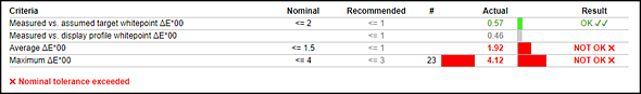 When tested, the factory profile shows an average Delta E of 1.92 and a maximum Delta E of 4.12. |