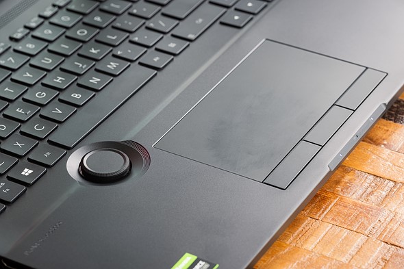 The Studiobook 16 features a three-button trackpad for 3D applications and a physical dial that can be used to adjust everything from brightness to brush size in Photoshop. |