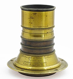 These lenses, eventually known as French Landscape Lenses, were used in the first Daguerreotype cameras. They had about a 50° angle of view (roughly equivalent to a 45mm lens on a full–frame camera today) and an F16 aperture. Chevalier deserved (but was not given) some credit for contributing to Daguerre’s invention of the camera.