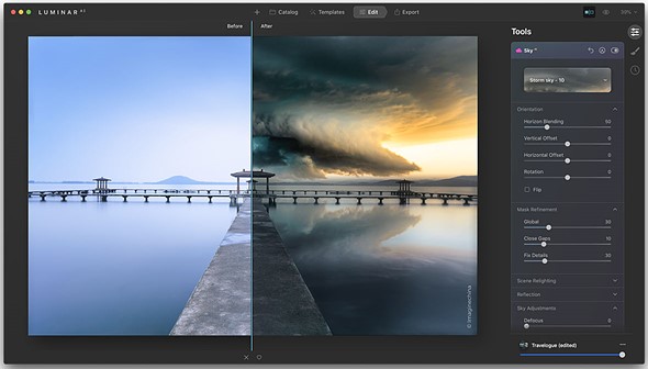 Luminar AI now automatically reflects the new sky in water, whether it’s the ocean, a river, lake or pool. The software automatically conforms the new sky’s reflection to the angle and depth of the scene to produce what Skylum promises are ‘incredible results.’ Sky AI can add reflections to ripples on the surface of water as well.