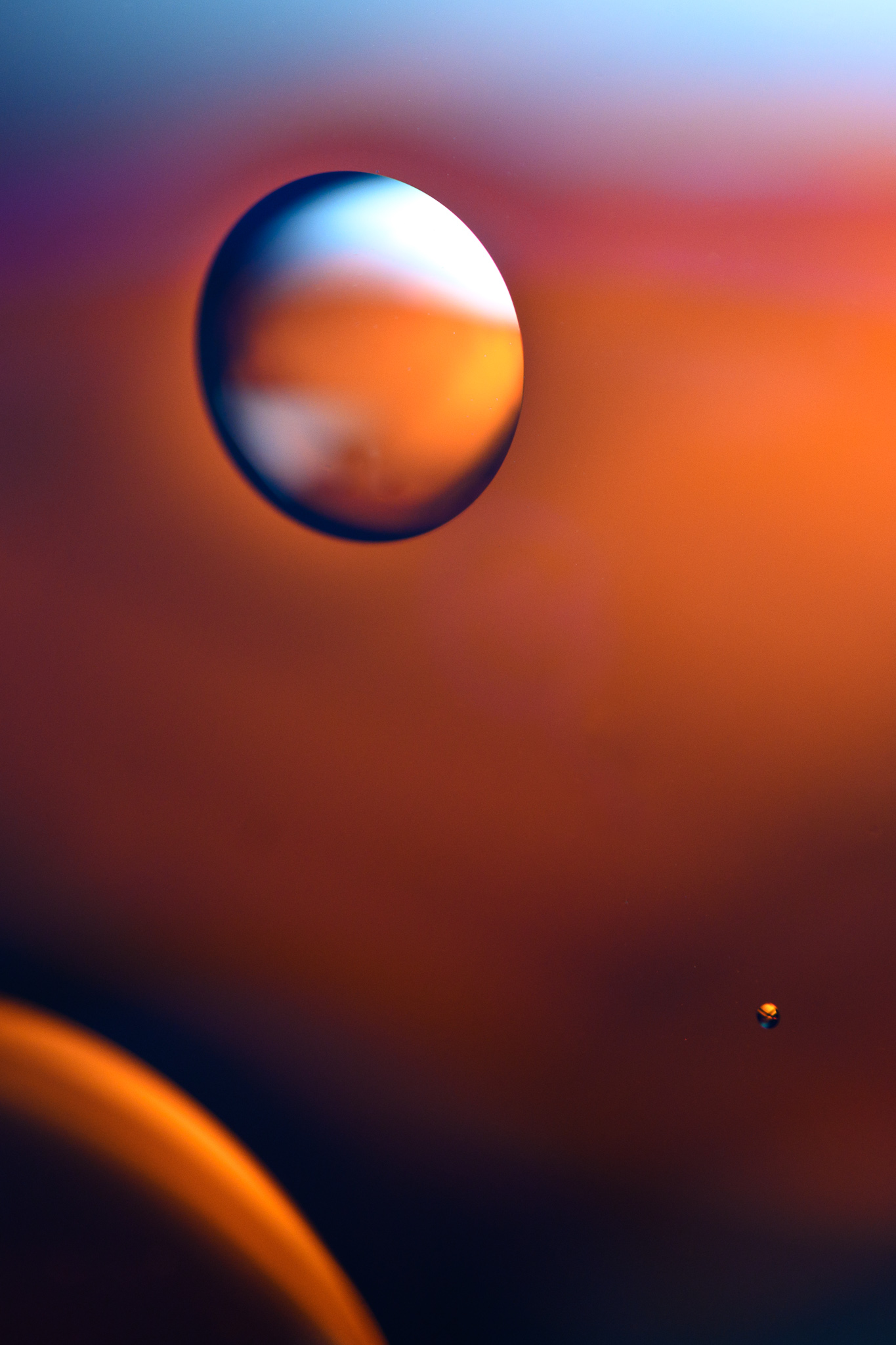 This may actually be my favorite idea on the list, because the results you can get are beautiful and varied. All you need to do is drip some oil on a dish of water, then photograph the setup from above.