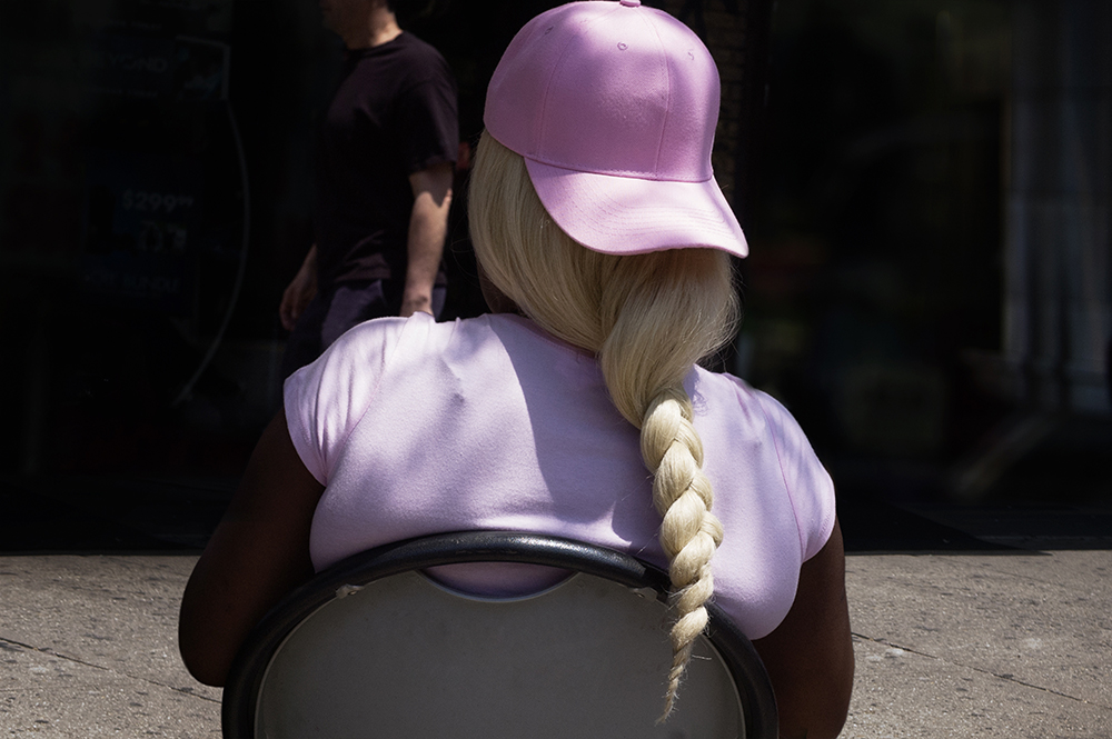 The project also includes several candidly shots of passersby; in one image a seated woman is seen from behind, for example, while in another a woman walking down the street is shown from the waist down.