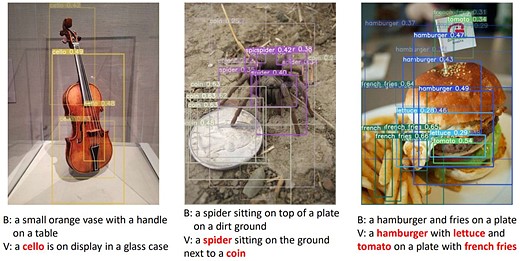 VIVO pre-training aims to learn a joint representation of visual and text input. We feed to a multi-layer Transformer model an input consisting of image region features and a paired image-tag set. We then randomly mask one or more tags, and ask the model to predict these masked tags conditioned on the image region features and the other tags … Extensive experiments show that VIVO pre-training significantly improves the captioning performance on NOC. In addition, our model can precisely align the object mentions in a generated caption with the regions in the corresponding image.