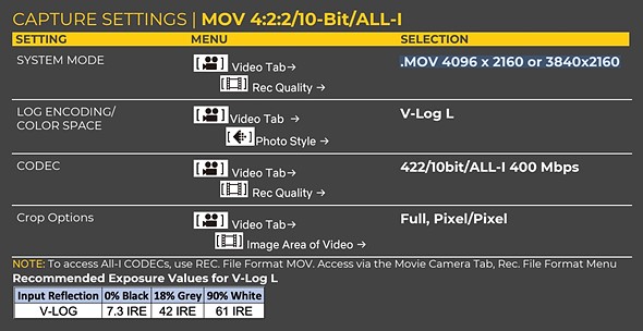The capture settings Netflix is suggesting when shooting with the BGH1, according to the camera production guide.