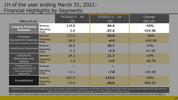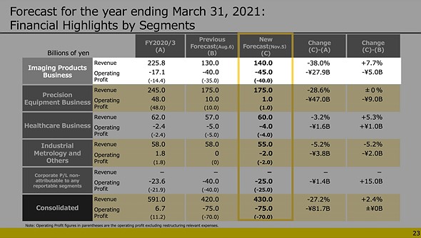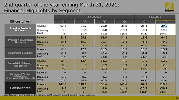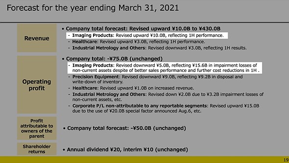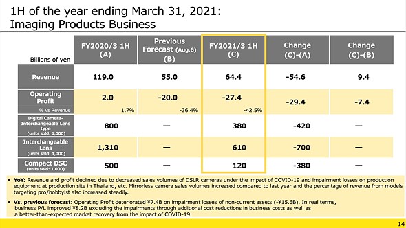 For its full FY2021 forecast, Nikon says it expects its Imaging Products Business to show ¥140B in revenue and an operating loss of ¥45B.