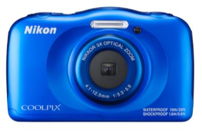Waterproof to 10 meters, shockproof to a drop of 1.8 meters, freezeproof to -10°C and dustproof, the affordable W100 contains a 13.2-effective-MP CMOS sensor. This camera can deliver stills at approximately 4.7 fps and Full HD video at 30p. The 3x optical zoom NIKKOR lens delivers a (35mm [135] format equivalent) 30-90 mm focal length range with Electronic VR. A 2.7-inch 230k-dot TFT LCD monitor is enhanced via a 5-level brightness adjustment control. There are numerous creative scene modes, as well as +/-2EV exposure compensation. Dedicated one-touch button controls make shooting easy in both challenging weather and underwater environments, and Nikon’s SnapBridge allows for easy sharing and storage with smart devices.