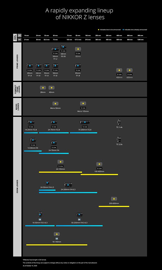 Below is another roadmap from Nikon that shows the focal length coverage of current and future lenses: