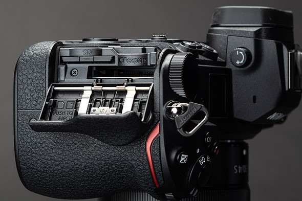 | Ask, and ye shall (sometimes) receive: The Z7 II now has one SD card slot and one CFExpress / XQD card slot. All control points shown are identical to those on the original Z7. |