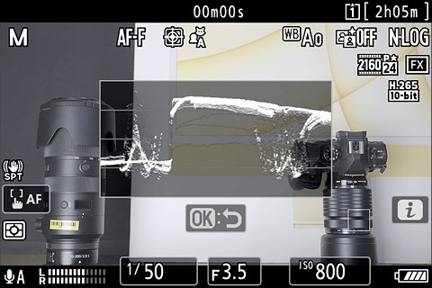 A waveform display (with a choice of two sizes) lets you understand how tones are distributed in your scene, and helps set exposure, particularly for Log and Raw shooting. |