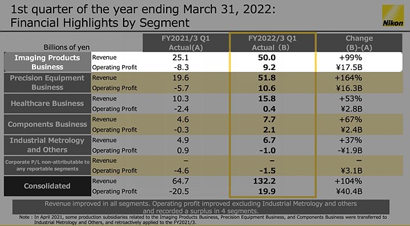 Nikon has shared its financial results for the first quarter of its 2022 fiscal year (Q1 FY2022), which ends March 2022 and spans from April 1, 2021 to June 30, 2021.
