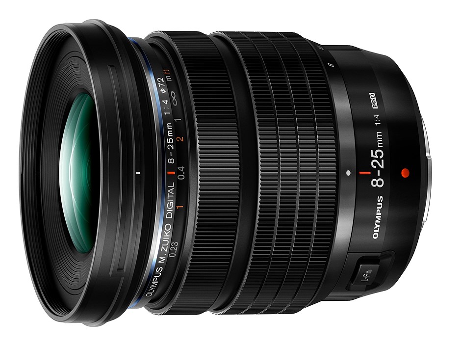 Olympus has added a new member to its ‘Pro’ lineup of high-end Micro Four Thirds lenses: the M.Zuiko Digital ED 8-25mm F4 Pro. The 8-25mm, which has a 35mm-equivalent field of view of 16-50mm and an F8 equivalent aperture, has numerous special elements, including a ‘DSA’ (dual super aspherical) element to reduce sagittal flare or comatic aberration (commonly referred to as ‘coma‘). A special ‘ZERO’ coating helps prevent flare and ghosting.