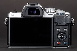 Olympus swapped out the tilting display on the E-M10 III for one that flips down 180° for taking selfies. Unfortunately, the downward-tilting design means the display is either blocked by or potentially even fouled by both tripods and selfie sticks, so framing handheld is your only option.