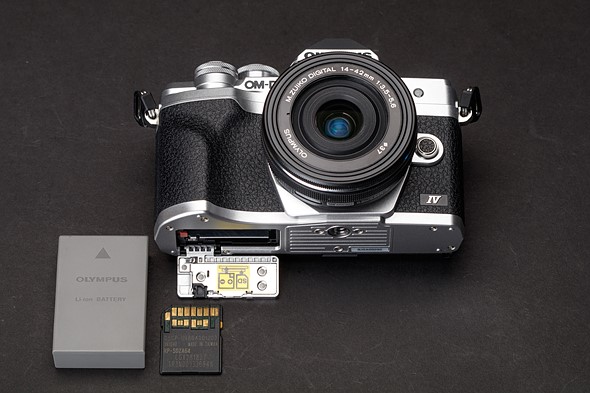 Under a plastic door on the bottom of the camera you’ll find the E-M10 IV’s battery and memory card compartment. The memory card slot supports high-speed UHS-II cards – a pleasant surprise for a camera in this price range – and you can tell by how quickly it clears its buffer.