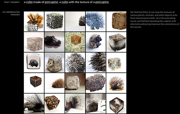 Further, looking at an array of images generated by the ‘a cube made of porcupine with the texture of a porcupine’ prompt can be interesting, but DALL-E can’t account for how disturbing some such images can be.