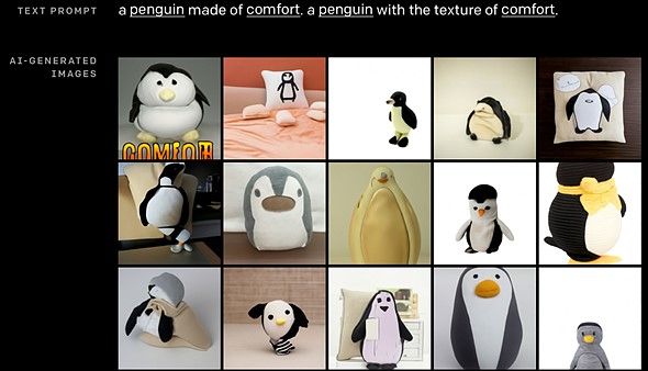 OpenAI writes further, ‘We’ve found that [DALL-E] has a diverse set of capabilities, including creating anthropomorphized versions of animals and objects, combining unrelated concepts in plausible ways, rendering text, and applying transformations to existing images.’ Consider the example below, showing the results for ‘a penguin made of comfort.’ Comfort is a somewhat abstract concept and it’s fascinating to see how DALL-E interpreted the prompt.