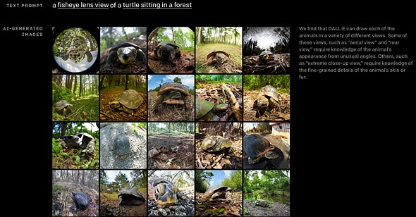 OpenAI writes, ‘[DALL-E] can independently control the attributes of a small number of objects, and to a limited extent, how many there are, and how they are arranged with respect to one another. It can also control the location and angle from which a scene is rendered, and can generate known objects in compliance with precise specifications of angle and lighting conditions.’ OpenAI continues, ‘Unlike a 3D rendering engine, whose inputs must be specified unambiguously and in complete detail, DALL·E is often able to “fill in the blanks” when the caption implies that the image must contain a certain detail that is not explicitly stated.’