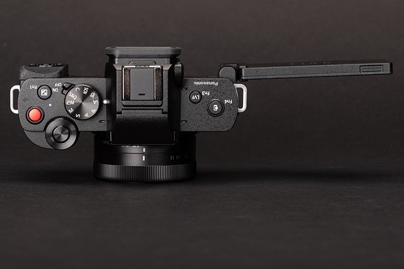 The G100 is an impressively small camera, seemingly owing as much to the GM lineup of cameras as any of Panasonic’s current models. We’re already covered the implications of this downsizing (the simplified shutter mechanism and electronic image stabilization system). In the hand, the camera feels dense and solidly built, without being excessively heavy.