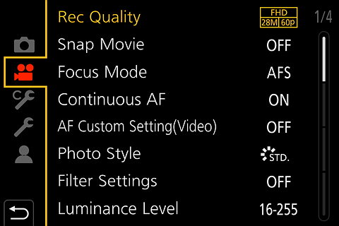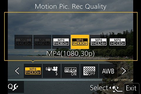 You get a different version of the menu with a video, rather than camera tab at the top left, if you set the mode dial to Creative Movie mode. Similarly there’s a different initial tab in the Slow&Quick mode.