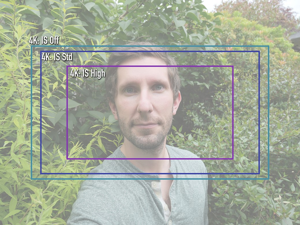 This means lens-only IS when shooting stills, but with the option of five-axis digital correction in 1080 mode and four-axis stabilization when capturing 4K.