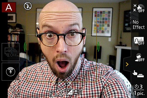 You can turn off ‘Self Shot’ mode to get the camera’s standard interface, if you prefer |