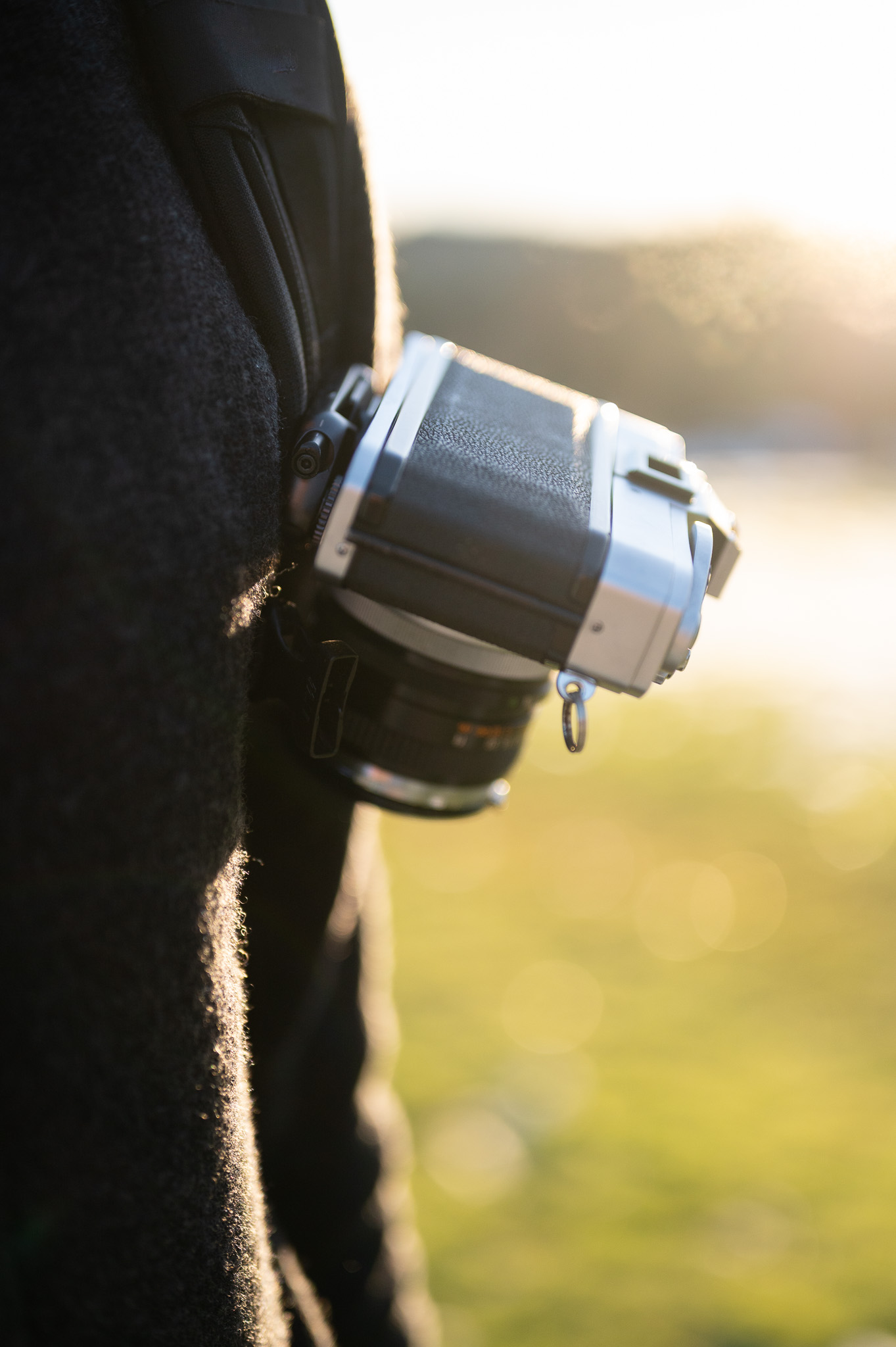 This is an excellent location because most photographers use a camera bag already to keep their gear with them. With the Capture Clip attached to a shoulder strap, it creates an in-between place to store one’s camera – not stashed away in the bag, nor in one’s hands. Instead, it’s right on one’s chest ready to go. Here, the weight is also nicely distributed onto a strap that is meant for load bearing.