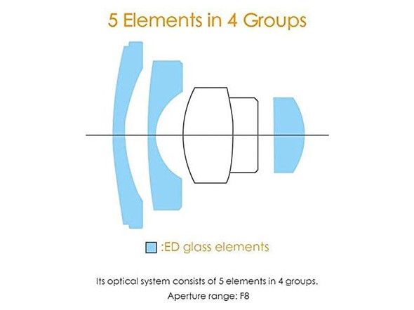 The pancake fisheye lens is constructed of five elements in four groups, including three extra-low dispersion elements. Despite being incredibly small, Pergear has managed to squeeze a manual focus lever into the frame of the lens (minimum focusing distance is 30cm / 1ft), however F8 is the only aperture you have to work with.