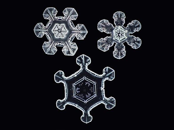 Of his snowflake subjects, Myhrvold says, ‘Snowflakes are a great example of hidden beauty. Water, an incredibly familiar thing to all of us, is quite unfamiliar when you see it in this different view. The intricate beauty of snowflakes derives from their crystal structure, which is a direct reflection of the microscopic aspects of the water molecule.’