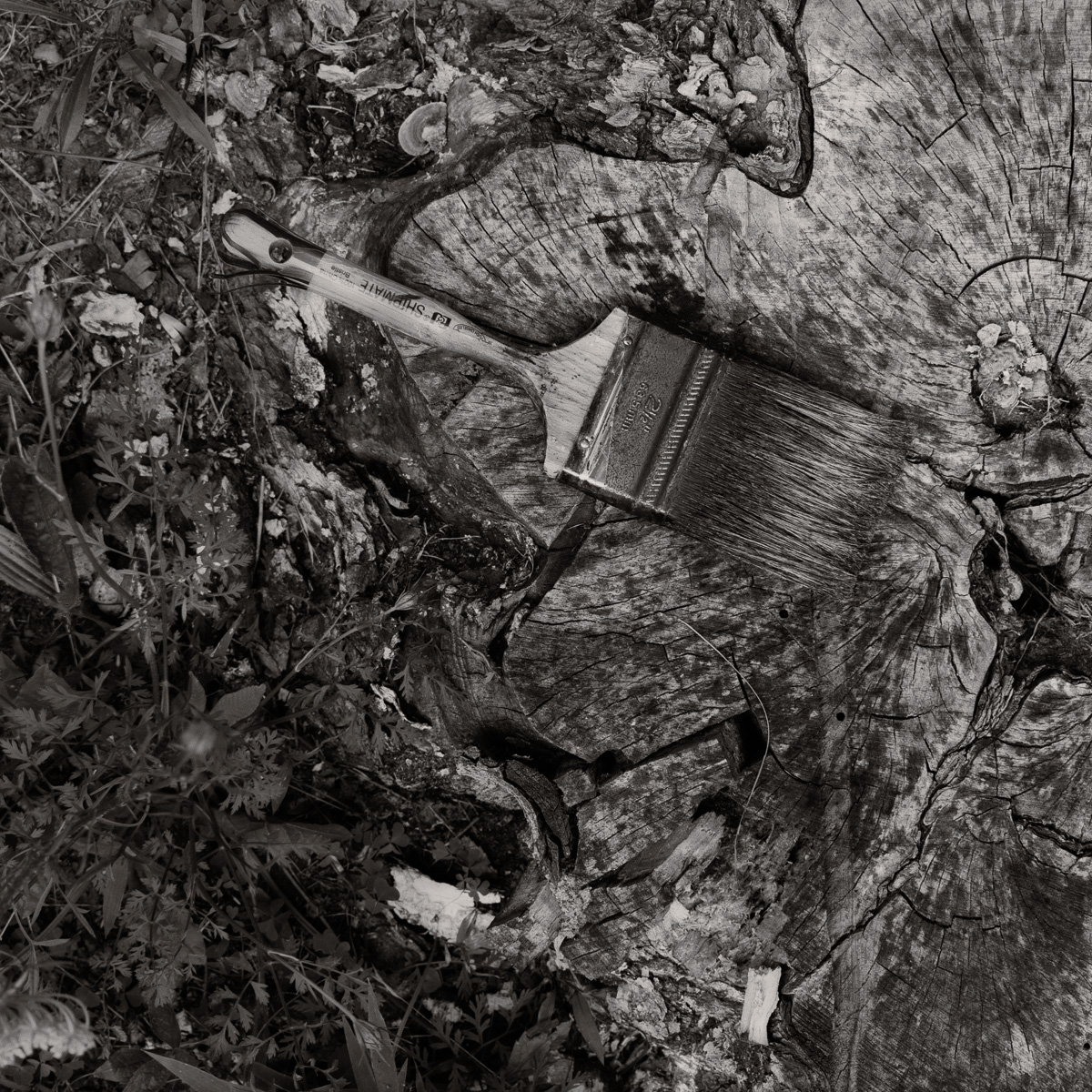 Just over a month later, I found myself at the cabin once again. For one reason or another, while walking around behind the cabin, searching as always for interesting intimacies in the woods, I came across a paintbrush casually lying upon the stump of a long-gone tree. Why was it still there? What was even being painted in the first place? I believe my grandmother had been using it and hadn’t put it away, although for what purpose, I couldn’t know.