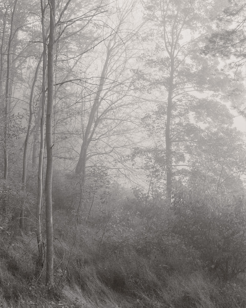 I don’t recall how many days I allowed to lapse before changing my mind. Even if I remembered, it wouldn’t matter, would it? All that I remember is how terribly I wished for fog to roll in with each passing day. Fog in Pennsylvania is a rarity, it seems, and though it occurs more frequently at the cabin thanks to the lake, this fog has a tendency not to spread very far. Even had it come along, there was no way it would reach these trees, so I had to deal with the scene at hand.