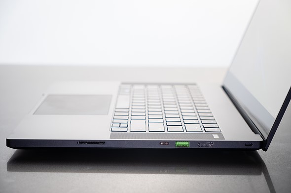 The Blade’s keyboard and trackpad are both phenomenal, but the matte black finish is a horrendous fingerprint magnet. Photo by DL Cade |