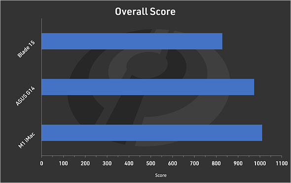 For this review, we compared the Blade 15 against the AMD-based 2021 ASUS G14 and the M1 iMac that we reviewed recently. You can see the specs of our three test machines below: