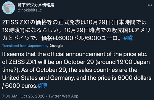When B&H listed the Zeiss ZX1 for pre-order earlier this month, we contacted both B&H and Zeiss on the matter, but both passed on the opportunity to comment on the matter. Sometime between then and now, the pre-order option on B&H was removed with no further information on when we might see more. That is, until Nokishita published the above tweet earlier this morning.