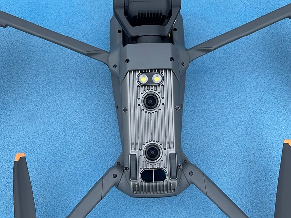 The Mavic 3 series has 2 obstacle avoidance sensors on the bottom of the drone plus auxiliary lights to aid in landing during low-light situations. |