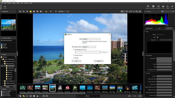 Nikon NX Studio also includes a number of smaller tweaks compared to Capture NX-D. For one thing, you can now upload images and movies directly to Nikon’s Image Space service and YouTube, respectively. You can also view slideshows with optional, user-provided background music, and the new program adds support for more obscure file formats such as 3D Multi Picture Object files or voice notes recorded on older Coolpix cameras.