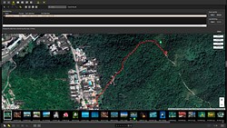 If you have an NMEA or GPX track log recorded by the camera itself or a compatible device, these can be imported and shown as a red track line. And once imported, they can be used to approximately geotag selected images based on their capture time as compared to the times recorded in the track log.