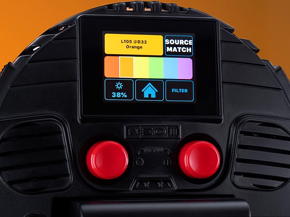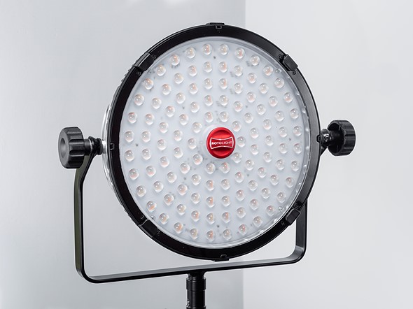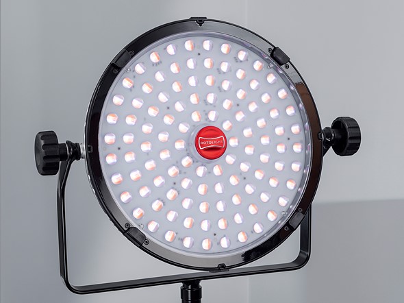 The Rotolight AEOS 2 is the larger of the two new RGBWW LED heads, displaying its ability to produce interesting colors. |