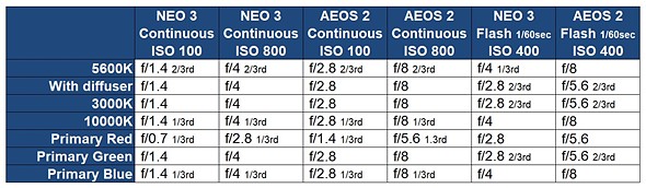 Not very scientifically taken, these figures will still give you a rough guide to the apertures you can expect from these lights at full power. |