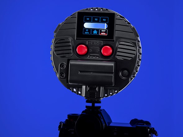 These heads are fitted with fans to keep the RGBWW LEDs at an operational temperature. Three-color LEDs create more heat than regular WW ones do, but the fans aren’t needed all the time, and when we switch on the lights, they run silently. I noted in the NEO 3 that the fan is needed after quite a short time – a matter of minutes – and that it’s pretty loud. If you were using the light in the hot shoe as a video light, you wouldn’t want to also have a microphone attached to your camera.