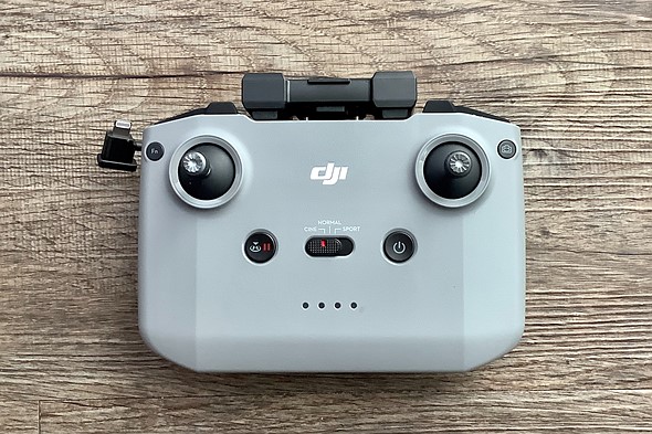 | The remote for the Mini 2 follows the trend of the new Mavic Air 2, mounting a smartphone above the control sticks instead of below for improved visibility. |