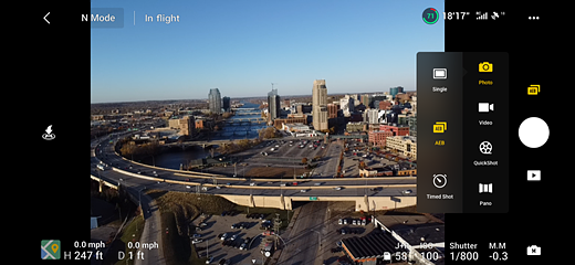 A useful feature that seasoned photographers will surely make use of is Auto Exposure Bracketing (AEB); the Mini 2 can take up three shots, one underexposed, one normal, and one overexposed. While DJI says the shots are automatically stitched together, I found all three appeared separately on my memory card. Either way, they can be combined in post-processing for an HDR image.