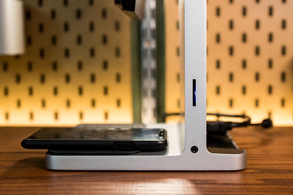 The base of the StudioDock features a pair of Qi wireless chargers on the front — one 5W charger and one 7.5W charger. This duo works perfectly for charging a phone and a set of wireless headphones as you do your work and proved to save space on my desk compared to using separate, dedicated chargers for my iPhone and AirPods.