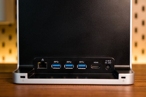 Speaking of bandwidth, let’s move on to the rear of the device, which offers a Gigabit Ethernet connection, three USB 3.0 ports and an HDMI port. It’s a solid array that should be more than enough for almost any workflow, especially considering you may not need to use any USB-A ports for adding chargers since the StudioDock has the two wireless chargers built into the base.