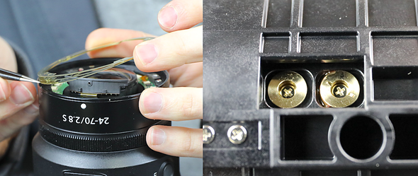 | The two most common types of lens adjustments: shims and eccentric collars. |