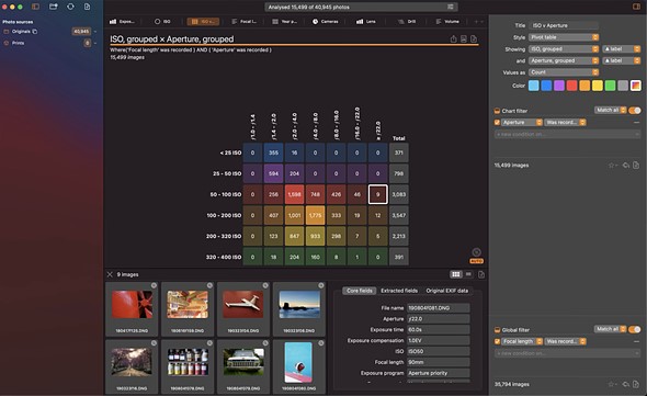 In addition to a complete user interface refresh, the app now supports Apple M1 silicon. At its core, what drew people to the first version of PhotoStatistica remains intact here. The app and its improved assortment of filters allow you to see what percentage of your images were shot at different ISO settings, at what apertures you most often shoot at, at what focal length or focal length ranges you most often shoot. You can filter selected parameters further by when and where images were captured, the camera used, the lens used, and much more. There were many filters and options in the original PhotoStatistica release, but Pegden has been hard at work expanding the software’s capabilities in every direction.