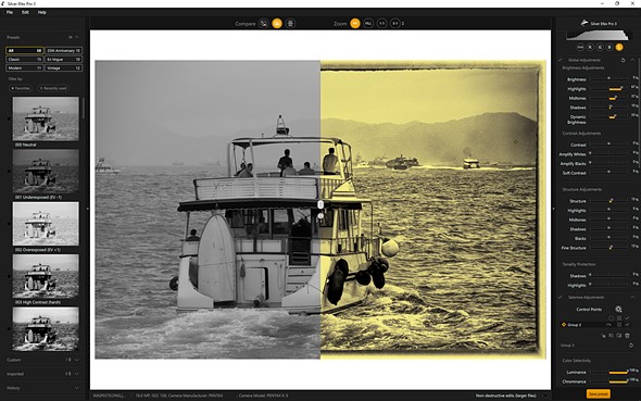 Available immediately as part of the Nik Collection 4 bundle, Silver Efex Pro 3 can function either standalone or as a plugin for Photoshop, Lightroom and other compatible apps on both Windows 8.1+ or macOS 10.14+. (And as of the recently-released Nik Collection 4 version 4.2, this includes support for Adobe Photoshop running natively on Apple M1 devices.)