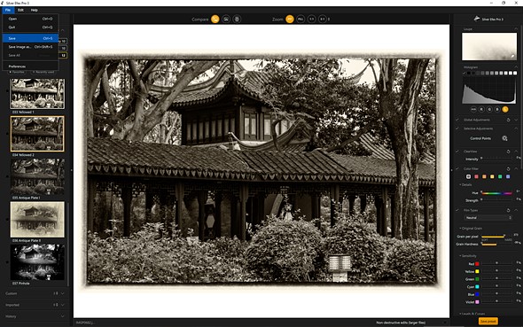 As a standalone app, Silver Efex can only open images in JPEG or TIFF formats, which rather limits its utility. Since it doesn’t support Raw files standalone, many photographers will instead want to pair it with other apps.