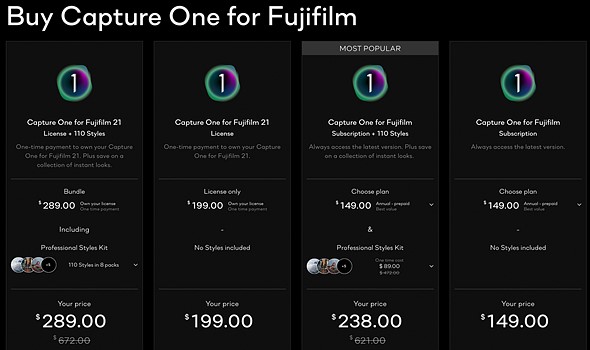 Further, Capture One Pro is still $299 for a new perpetual license with upgrades starting at $199. Subscription plans for Capture One Pro start at $19/month. These prices have not been changed.